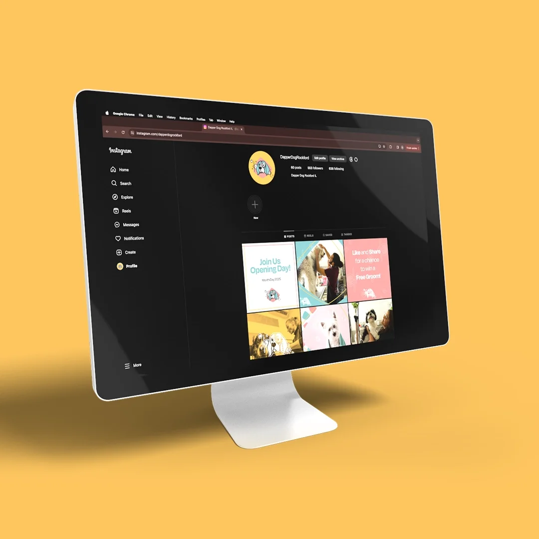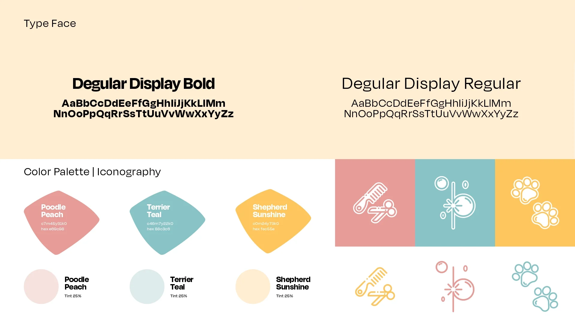 A local dog grooming startup needed a logo, and business cards—so I set out to create a brand that really popped. Inspired by retro ’60s design and softened with a bubble-gum color palette, the look blends nostalgia with a fresh, modern twist. I also created social media template styles and a custom apron for the grooming team, giving the whole brand a fun, bubbly personality from head to tail.